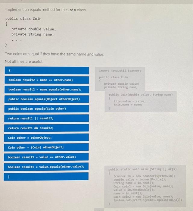 Solved Implement An Equals Method For The Coin Class Public Chegg Com